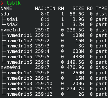 1 | NAME MAJ:MIN RM SIZE RO TYPE MOUNTPOINTS |